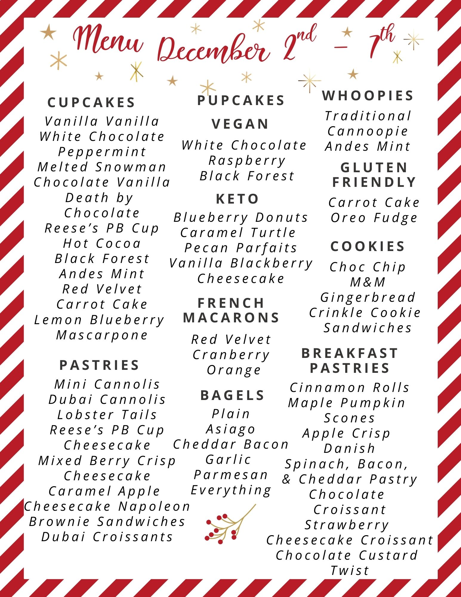 Bagels, Croissants, Scones, Danishes and Cinnamon Rolls, etc. Available Daily!